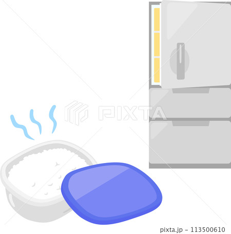 保存容器に入れたご飯と冷蔵庫、冷ご飯