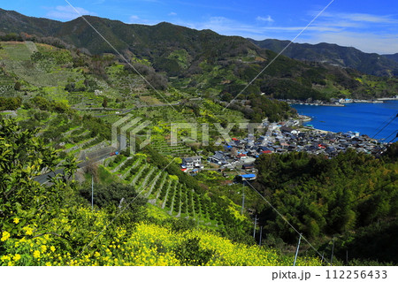 【愛媛県】晴天の宇和海狩浜の蜜柑畑