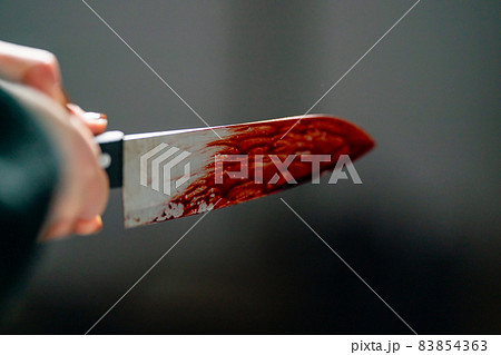 血のついた包丁。殺人、傷害事件のイメージ。