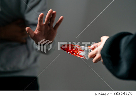 血のついた包丁を持つ手。殺人、傷害事件のイメージ。