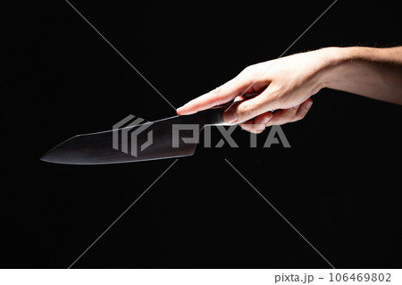 刃物を突き刺す_包丁を持つ男性の手|殺し屋_ヒットマン_犯罪事件_殺人犯_殺意_復讐のイメージ素材