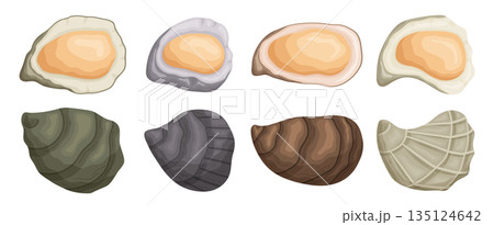 Set Of Oysters, Shellfish Mollusk With A Rough, Calcified Exterior. Prized For Its Delicate, Briny Flesh, Vector