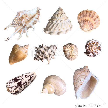 Tropical underwater set of seashells photo. Isolated on white background. For design, prints, fabric or background.