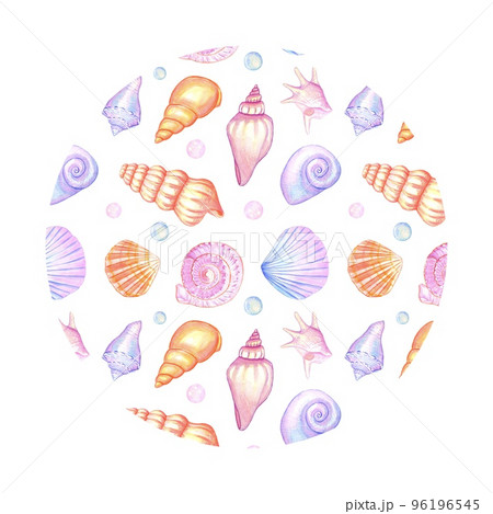 Round background with watercolor seashells
