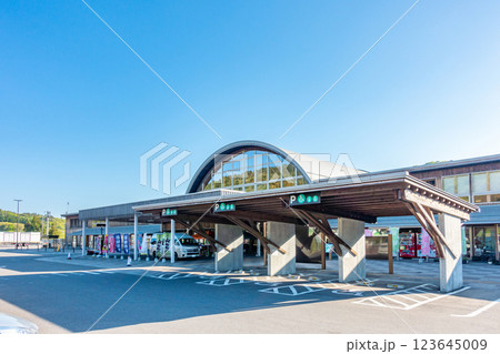 道の駅ふたつい きみまちの里 米代川・七座山へ貫通させるアーチ型大屋根 アーチトラス 木の建築文化