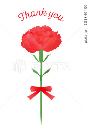 Thank youのメッセージ付きの赤いカーネーションのイラスト