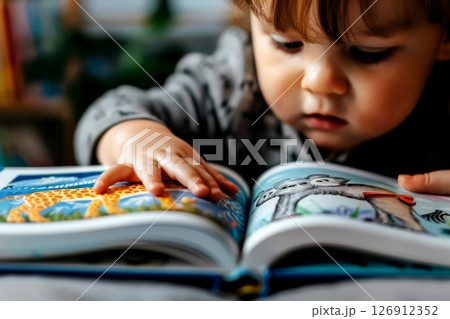 Cute children baby reading book . Education learning concept. AI generative