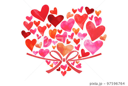 水彩風 ハートが集まったハート ピンク 赤