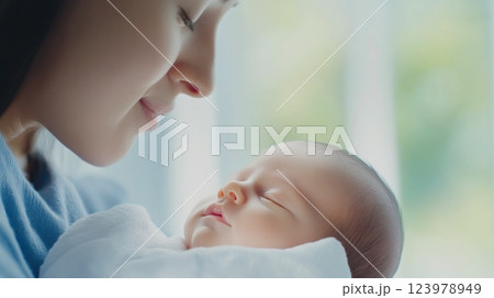 Woman Holding Child in Her Arms. Generative AI