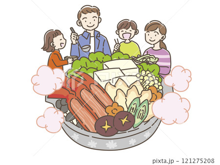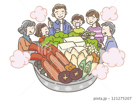 蟹鍋を食べる家族