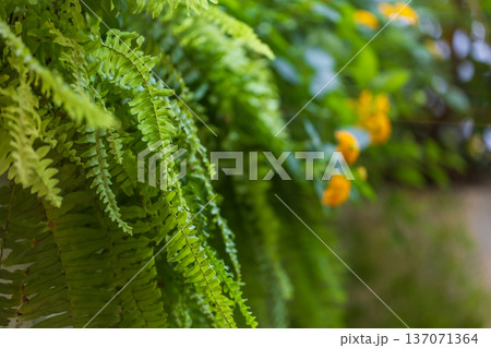翠綠蕨類點綴的寧靜庭院景觀