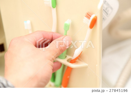 歯ブラシを持つ手元