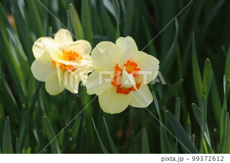 変わった品種の水仙の花が咲く讃岐まんのう公園