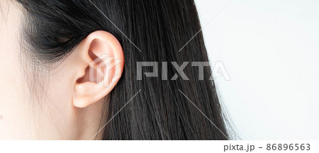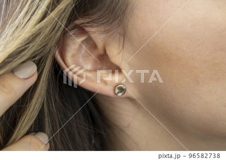 Elf's Ear. Close-up of a woman's ear with a fused lobe. Ear without earlobe.