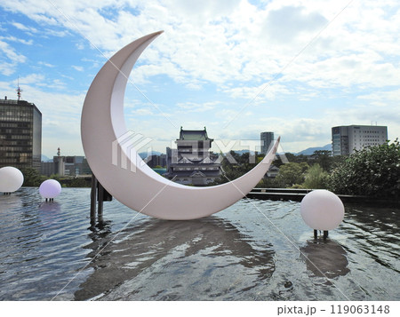 北九州市小倉北区にある観光スポット和傘が飾られた小倉城