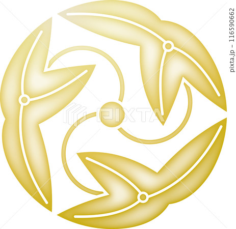 家紋 抱き葉沢瀉に三つ巴【金色】