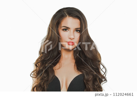 Beautiful sensual fashion model with dark healthy hairstyle, fresh clean skin and trendy make-up