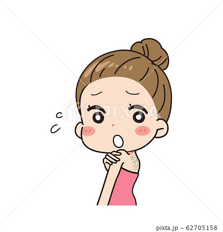 背中のムダ毛が気になる女性の斜めイラスト 上半身