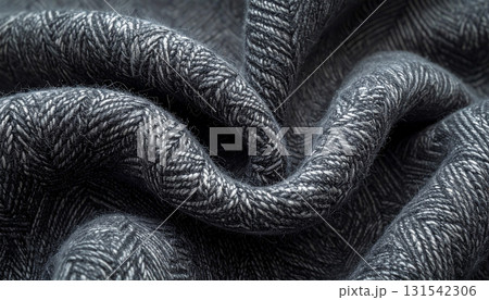 ウール生地の立体的なシワに現れるヘリンボーン柄のクローズアップ