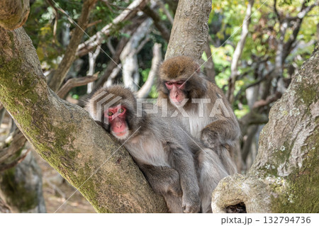 木の上で毛繕いするニホンザル 嵐山モンキーパークいわたやま