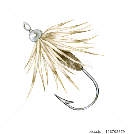 渓流釣り 川釣り 魚釣り 毛鉤 水彩 イラスト