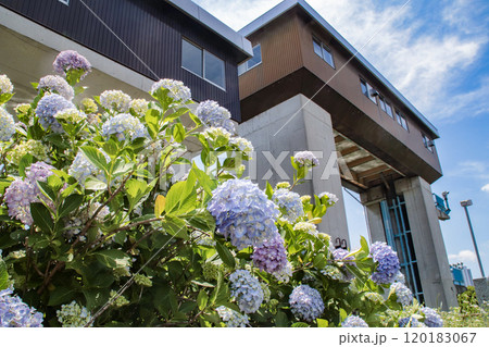 あじさいと毛馬閘門/大阪府大阪市都島区毛馬町3丁目