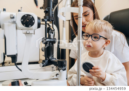 Mother with her little son is outdoors. In sportive clothes