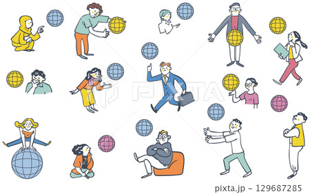 地球を駆け回るグローバルは人材 セットのストックイラスト