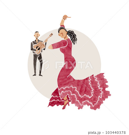フラメンコ ダンス 人物 水彩 イラスト