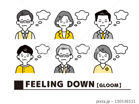 気が滅入る・落ち込む、シニア世代のビジネスマンの上半身アイコンセット_ベクター
