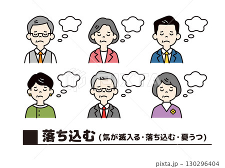 気が滅入る・落ち込む、シニア世代のビジネスマンの上半身アイコンセット_ベクター_カラー