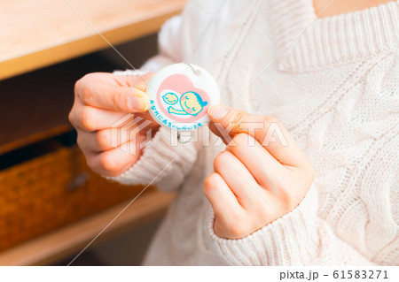バッグの内側にマタニティマークを付ける女性