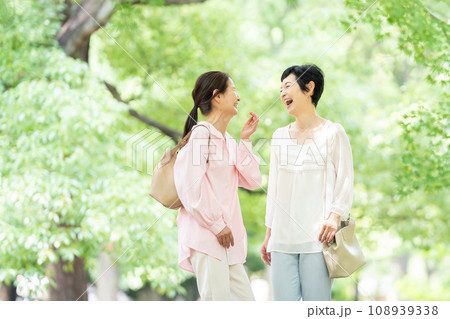 友達とお出かけするミドル女性