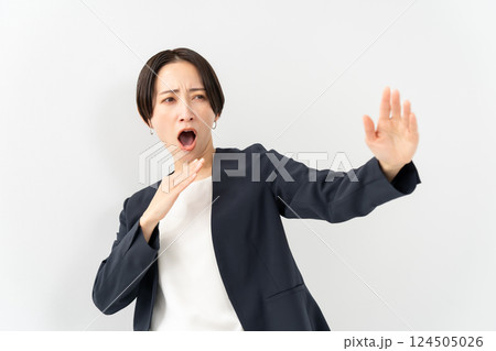 超能力を発揮するインカムをつけたビジネス女性のセット