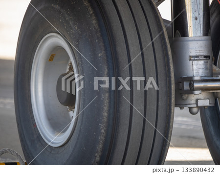 Detail view of landing gear tires on old static aircraft