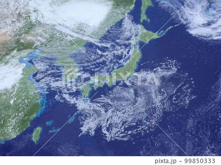 日本列島と梅雨前線 架空の天気図(3DCGイメージ)
