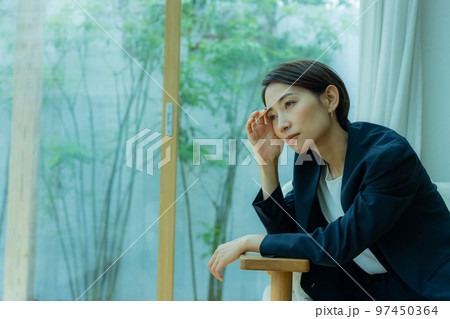 頭痛に悩む女性 片頭痛 悩む女性 不安を抱える女性 何かを考える女性