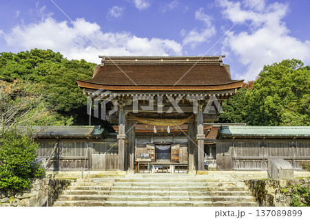 石川県・氣多大社の鳥居と拝殿 青空の下に佇む歴史ある神社