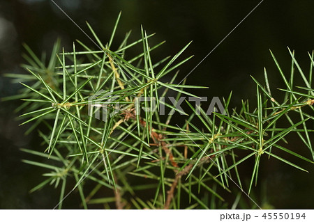 自然 植物 ネズミサシ、針のような葉は三本輪生。真ん中にクッキリと白い気孔帯が見えます
