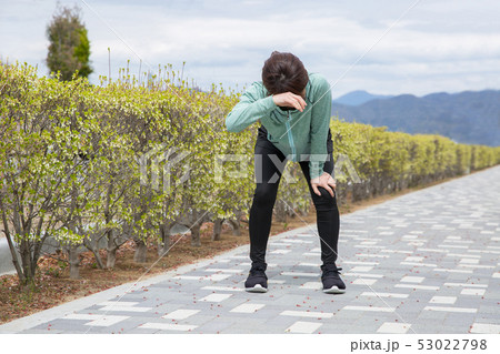 運動後に汗冷えして寒い男性(半袖・冷え性・低体温症・悪天候)