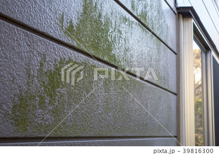 緑色に汚れた白い外壁