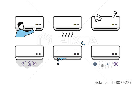 エアコン・冷房・クーラーのトラブルのシンプルなベクターアイコンイラストセット
