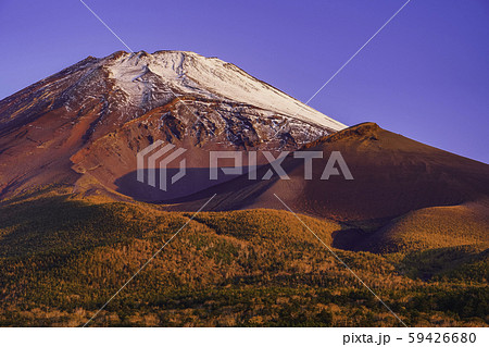 色彩豊かな早朝の富士山と宝永山と火口
