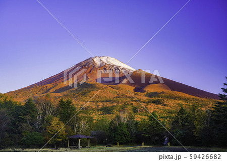 美しい朝日の富士山と田貫湖
