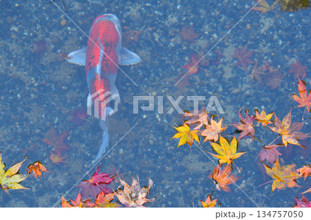 風流 水の上の落葉 鯉