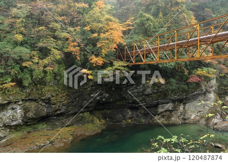 吉野川に架かる黄色い鉄橋 (高知県 大川村大平 本川大杉線)