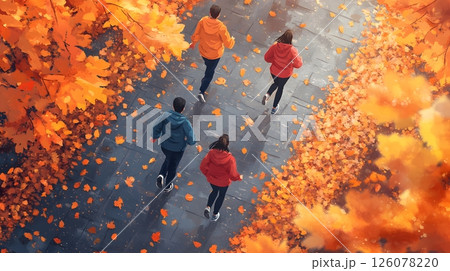 warm fall atmosphere in vector isometric public park people wearing sweaters jogging through falling leaves