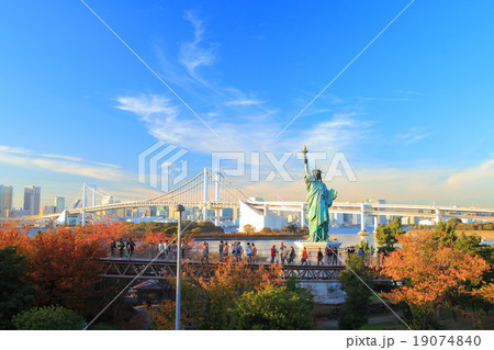 《東京都》自由の女神とレインボーブリッジ・お台場の都市風景