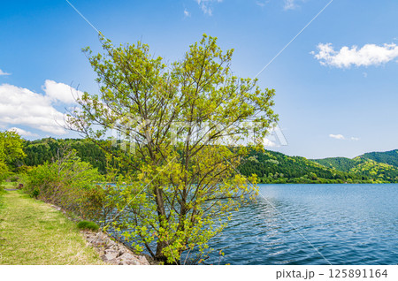 新緑の余呉湖風景 滋賀県長浜市余呉町