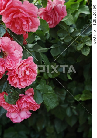 Pink flowers in a green bush. Vertical background. Wallpapers phone.